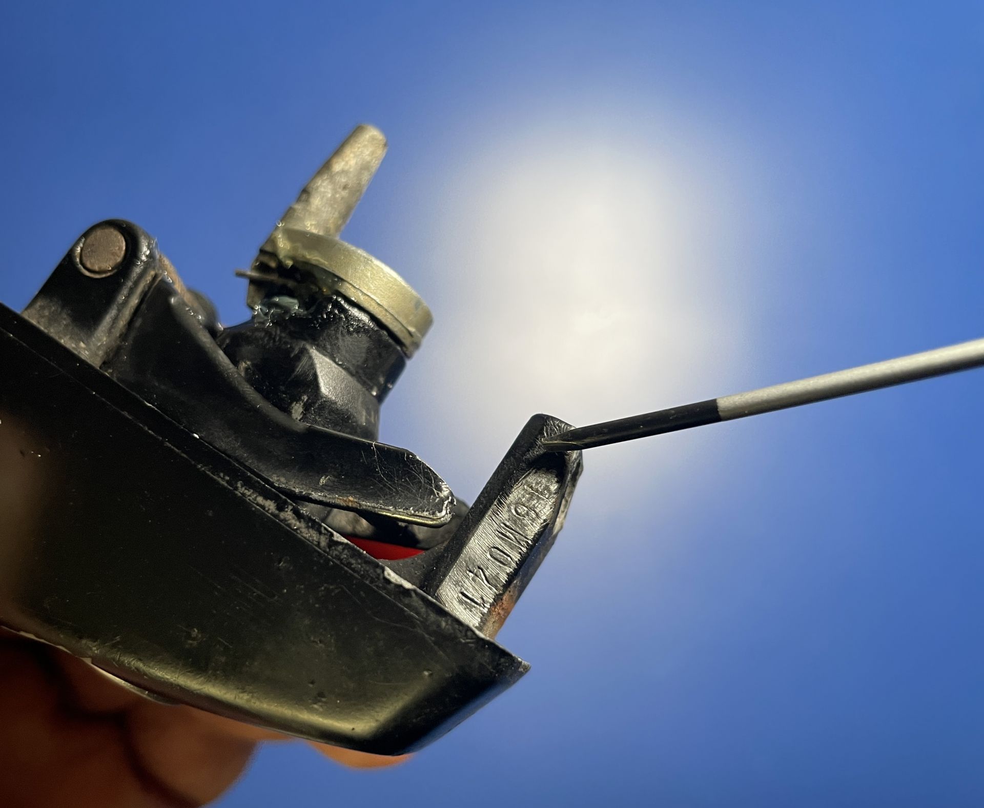 Po otrzymaniu przesyłki dokładnie sprawdziliśmy zamek. Na jego obudowie znajdował się czytelny kod, który umożliwił nam precyzyjne dorobienie klucza. Ale na tym nie poprzestaliśmy — profilaktycznie wyjęliśmy wkład zamka z obudowy, dokładnie go oczyściliśmy i nałożyliśmy świeży smar. Dzięki temu zamek działa jak nowy, a klucz idealnie do niego pasuje.